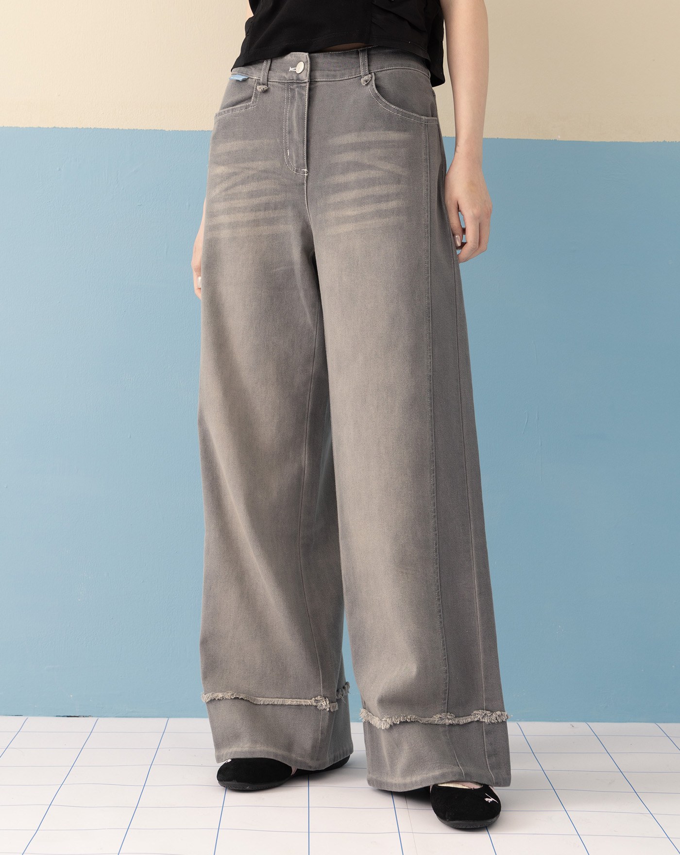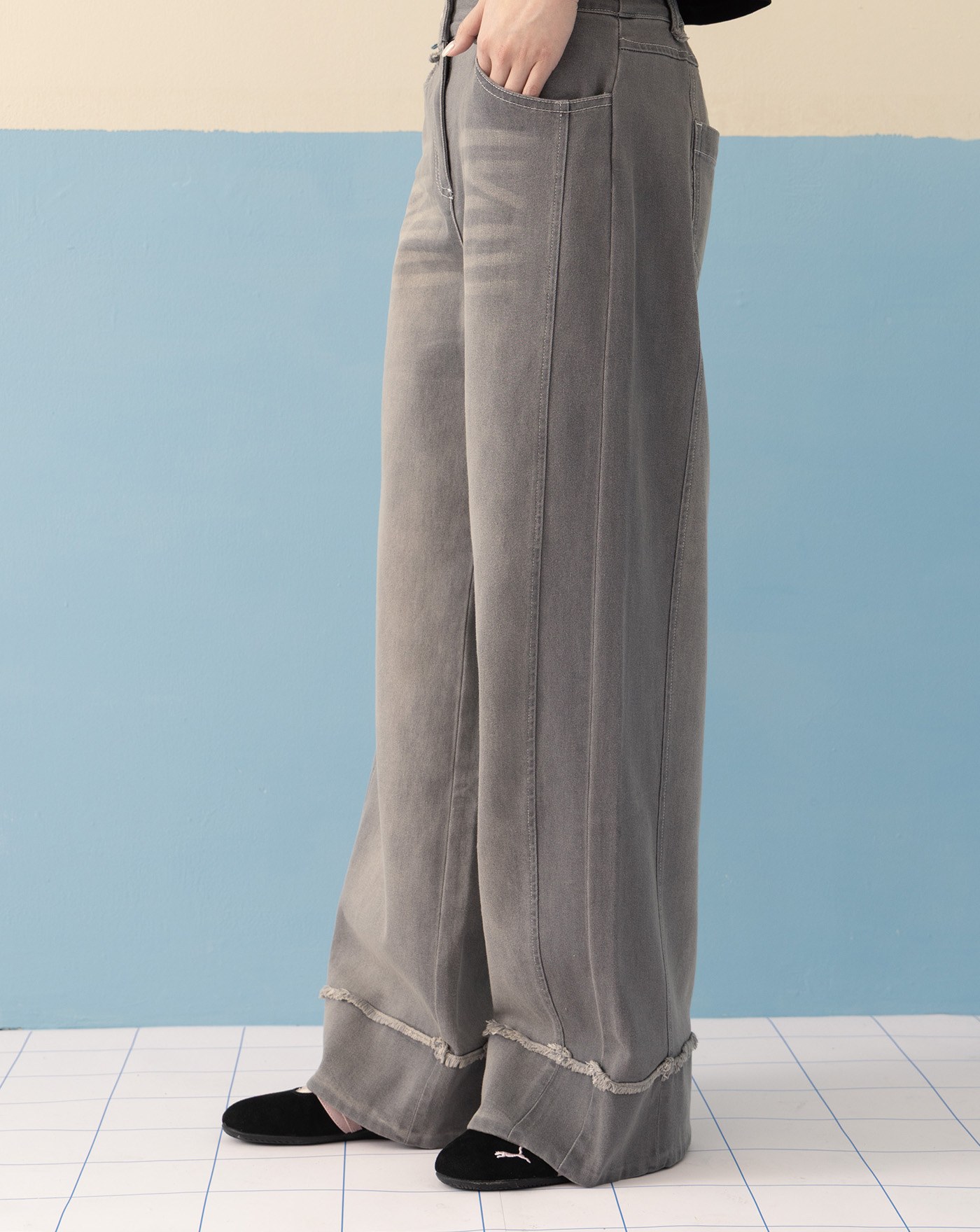 shadow顯瘦好比例仿牛仔直筒寬褲 (兩色)