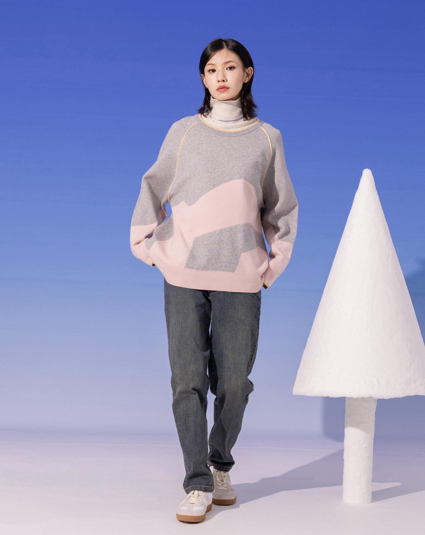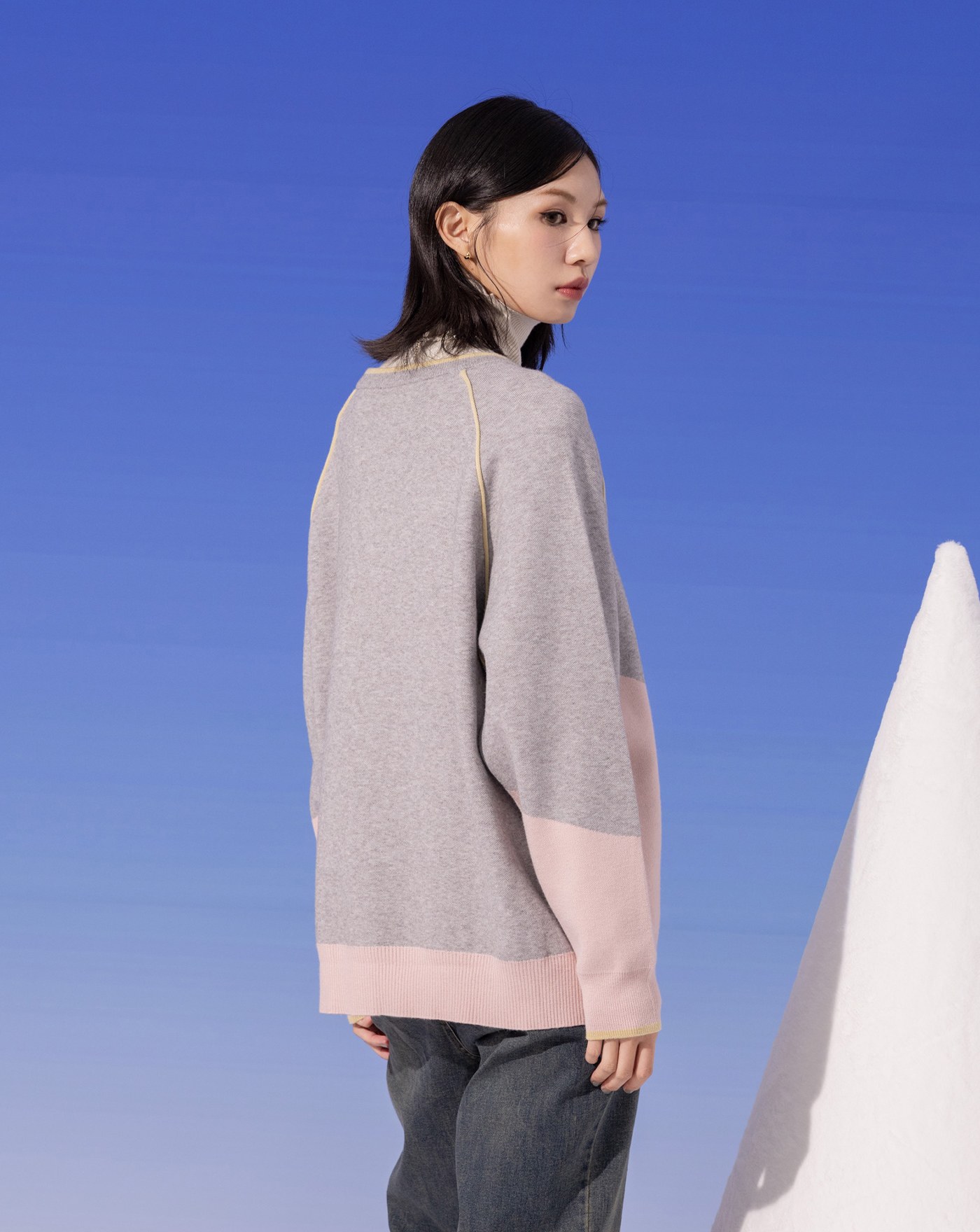 鑰匙圖案撞色緹花針織毛衣(兩色)