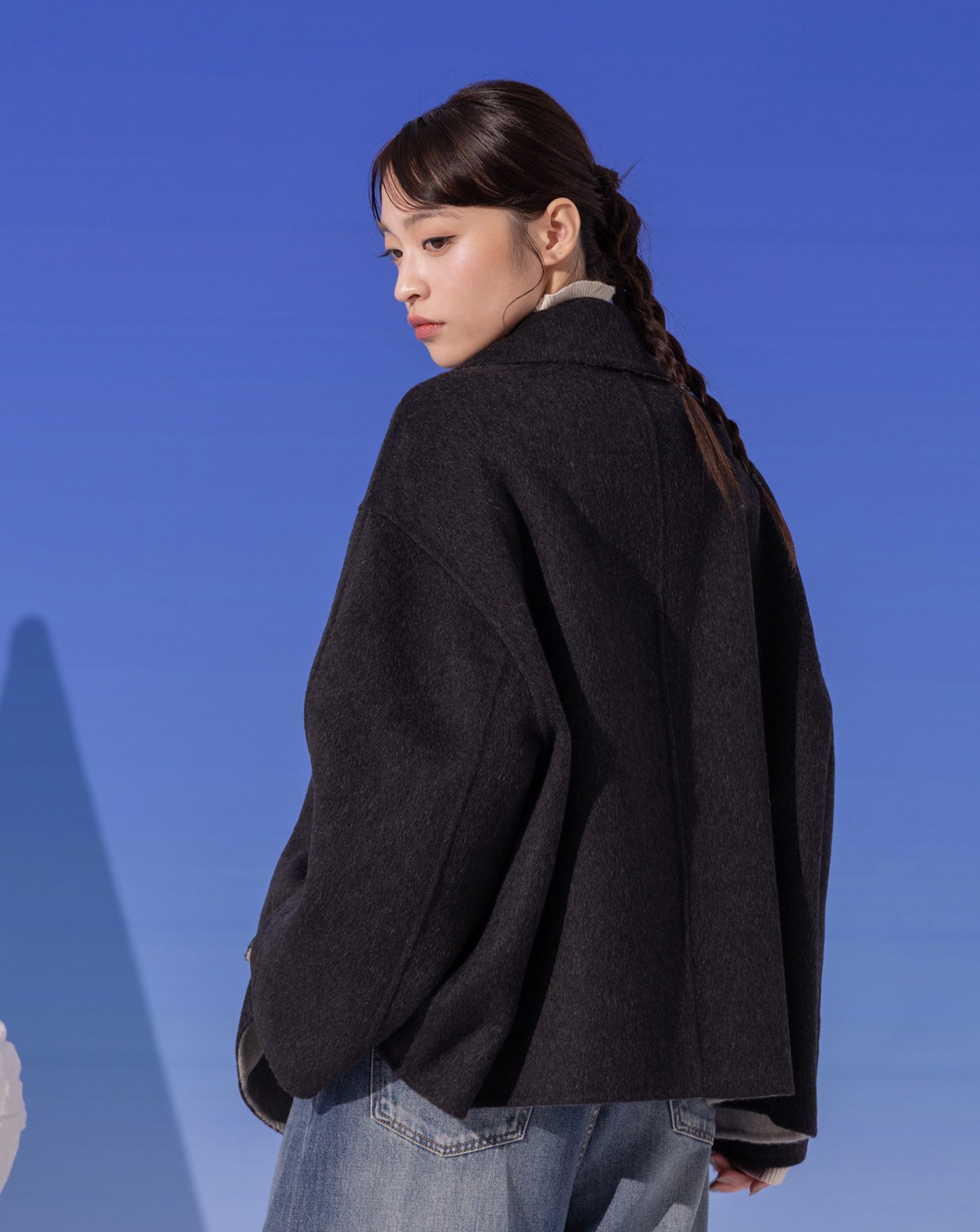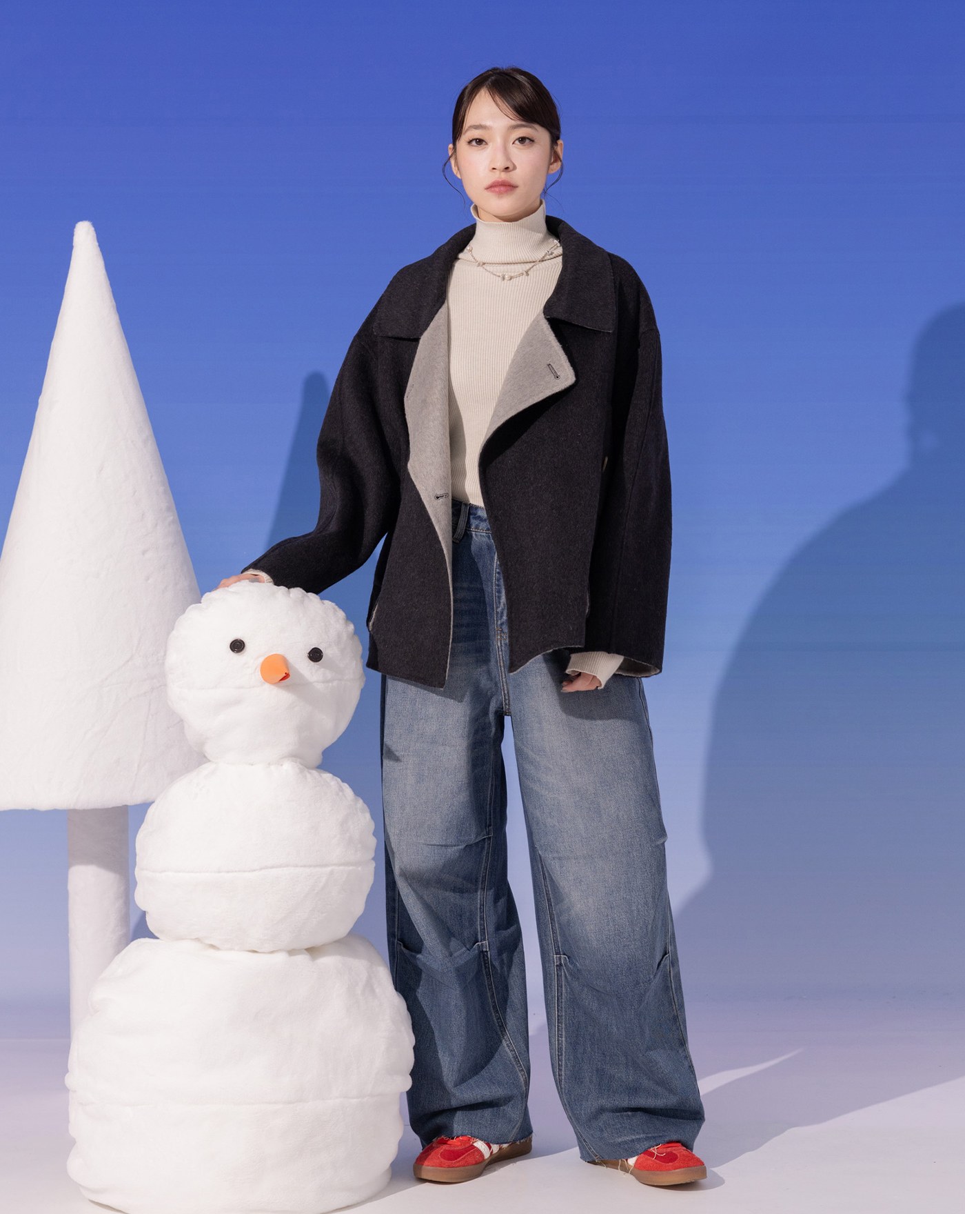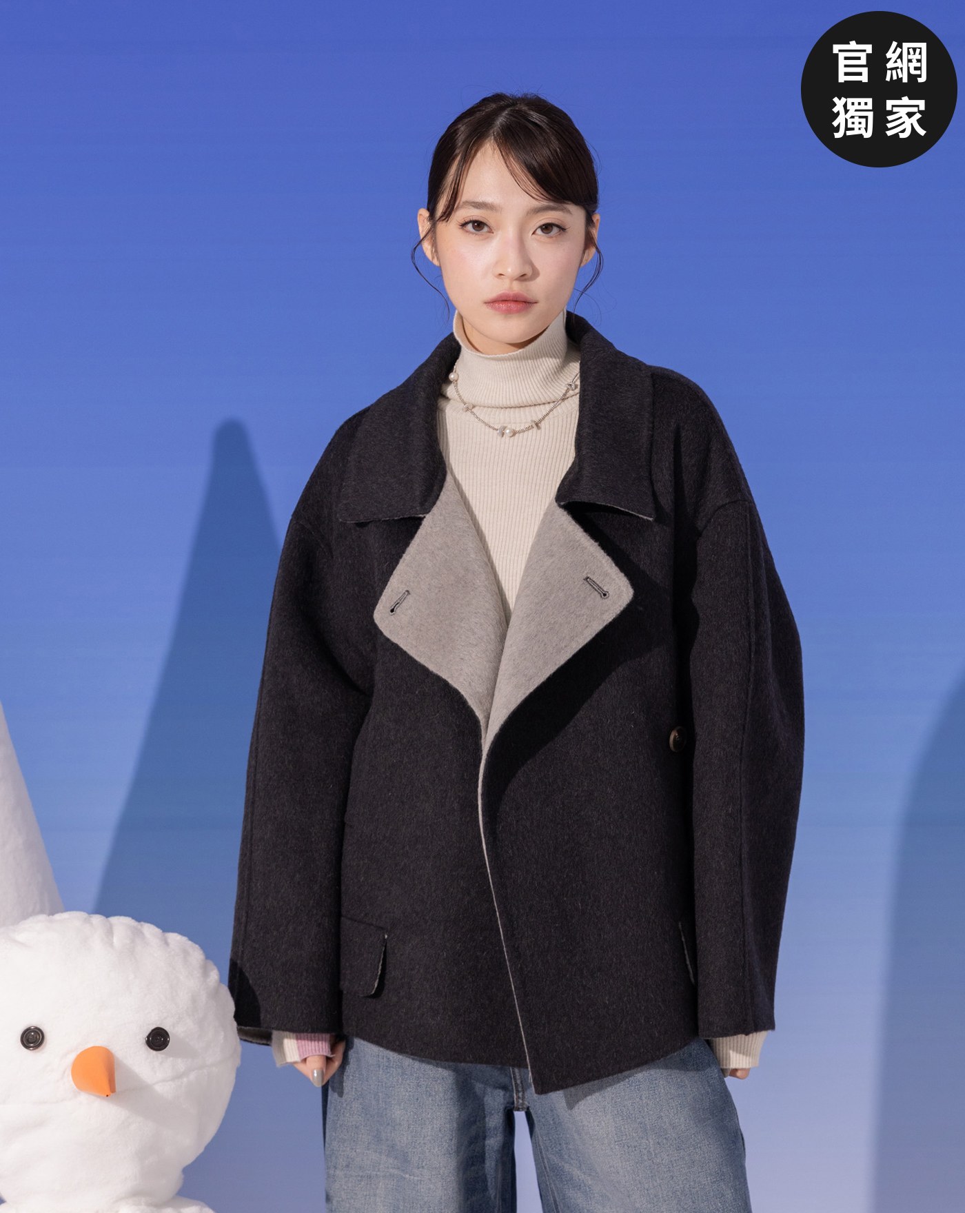 ➤可拆式針織連帽羊毛短大衣(兩色)