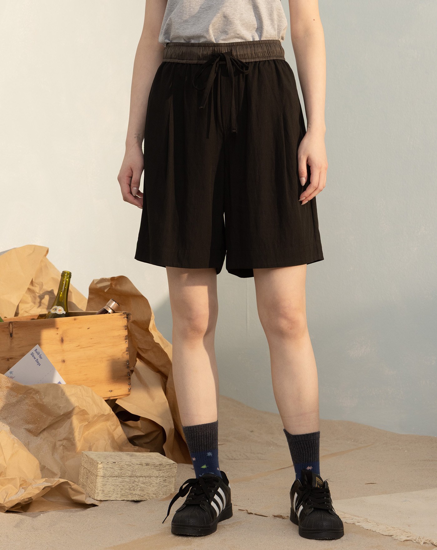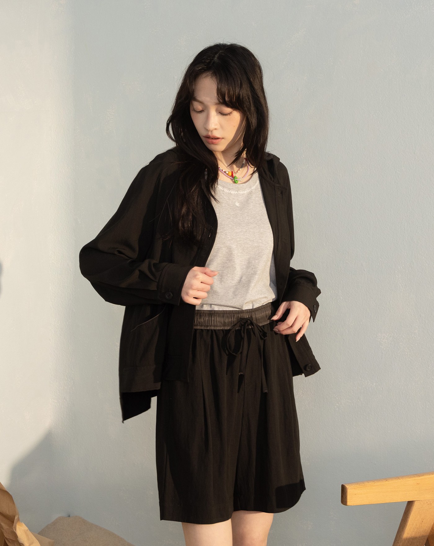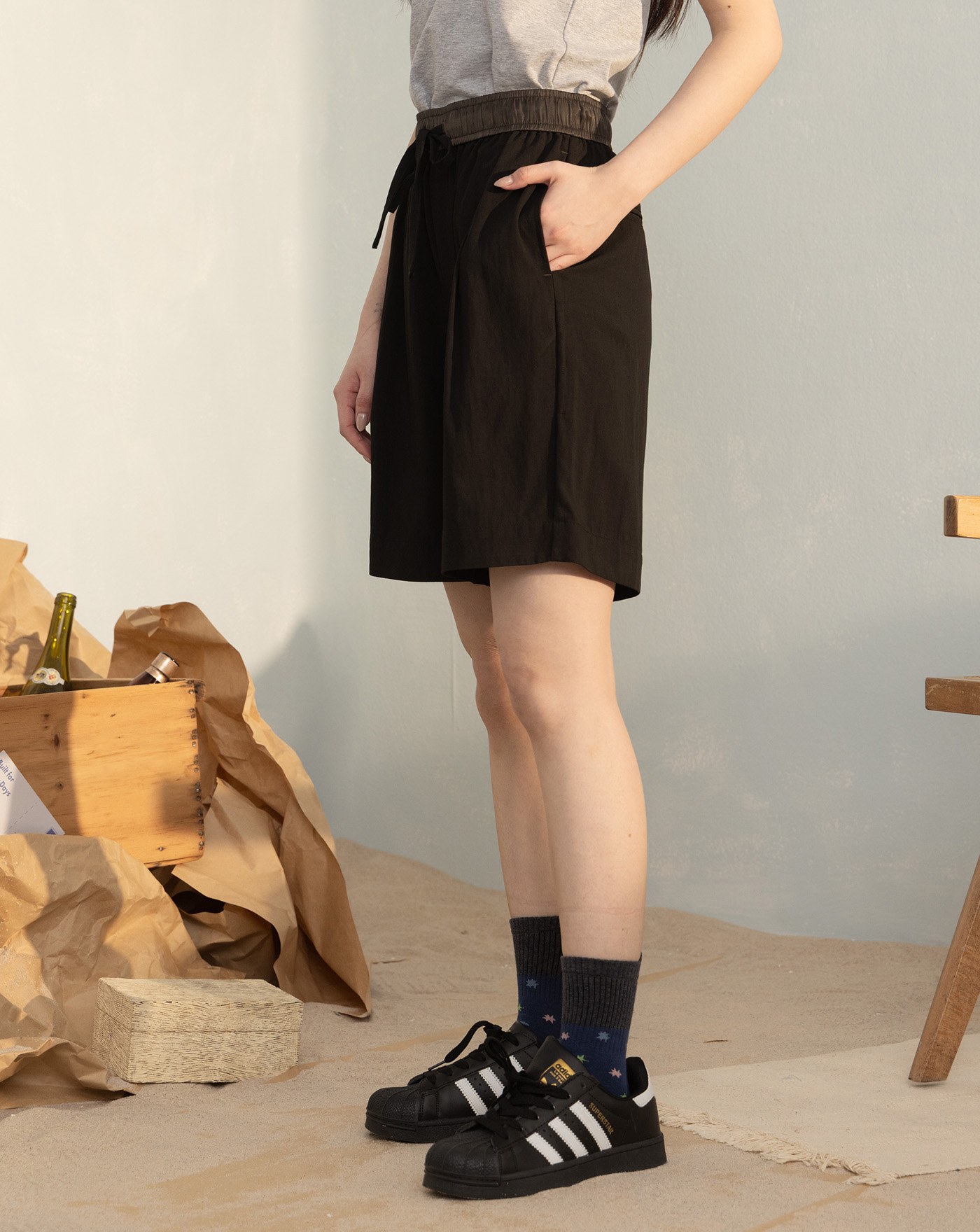 雲霧染工裝五分褲附裙簾(兩色)