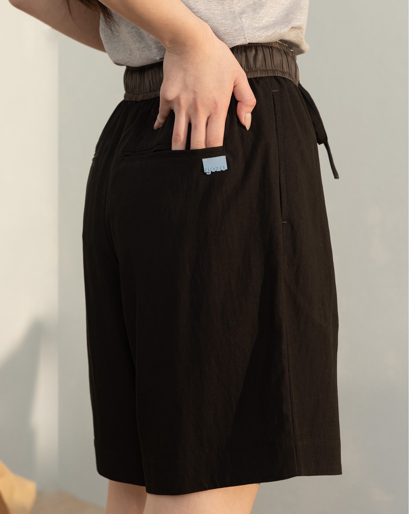 ◢g+微笑拼接格紋短褲(兩色)