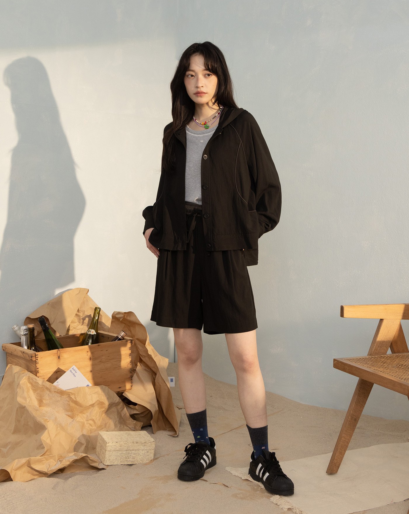 ➤涼感弧線造型口袋連帽外套(兩色)