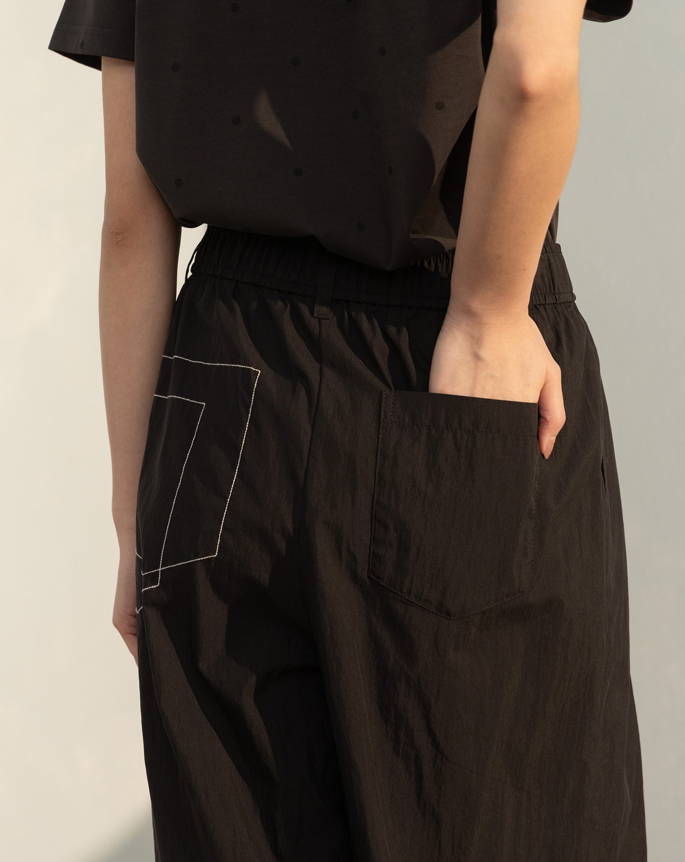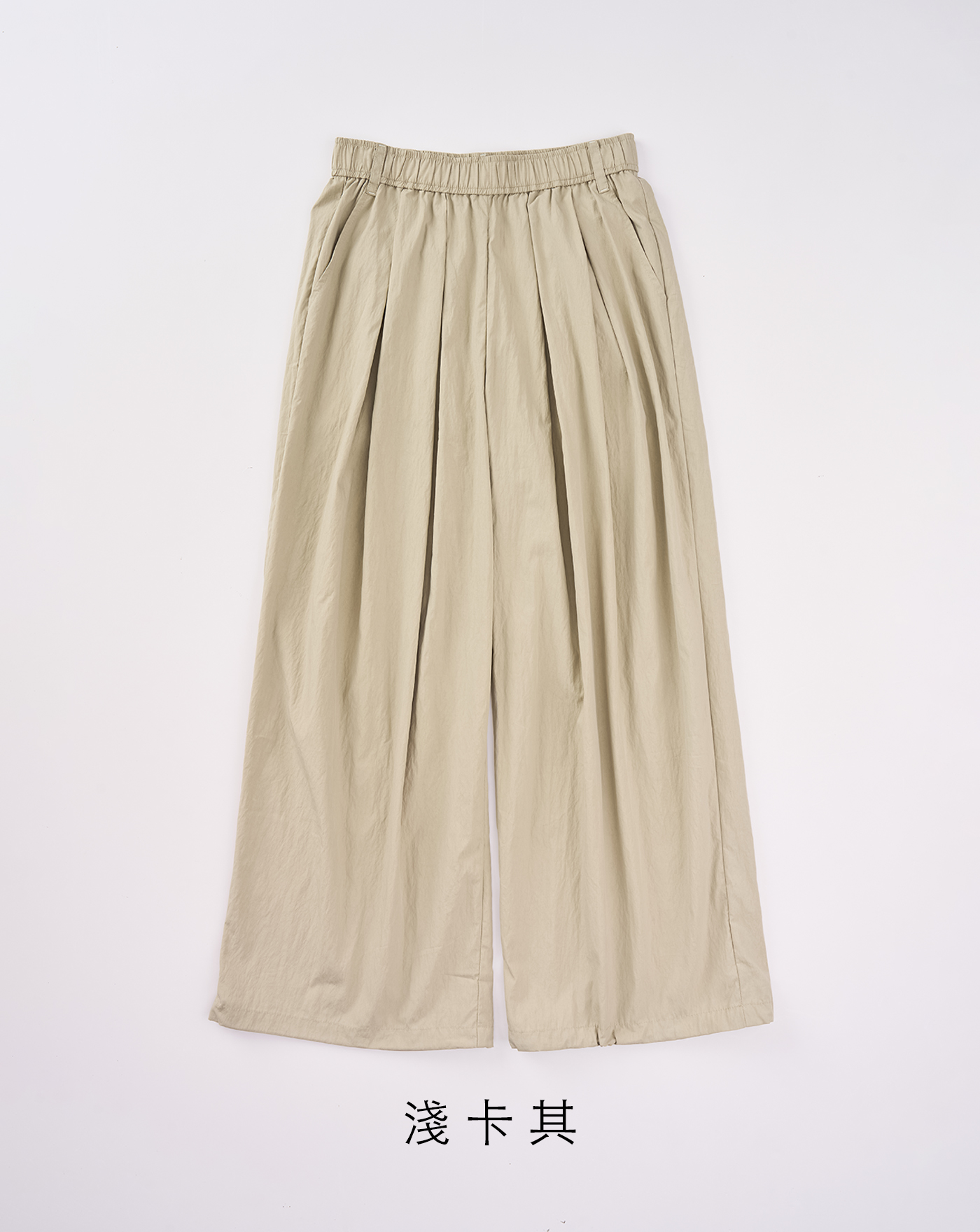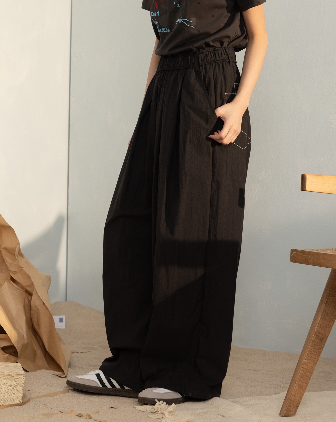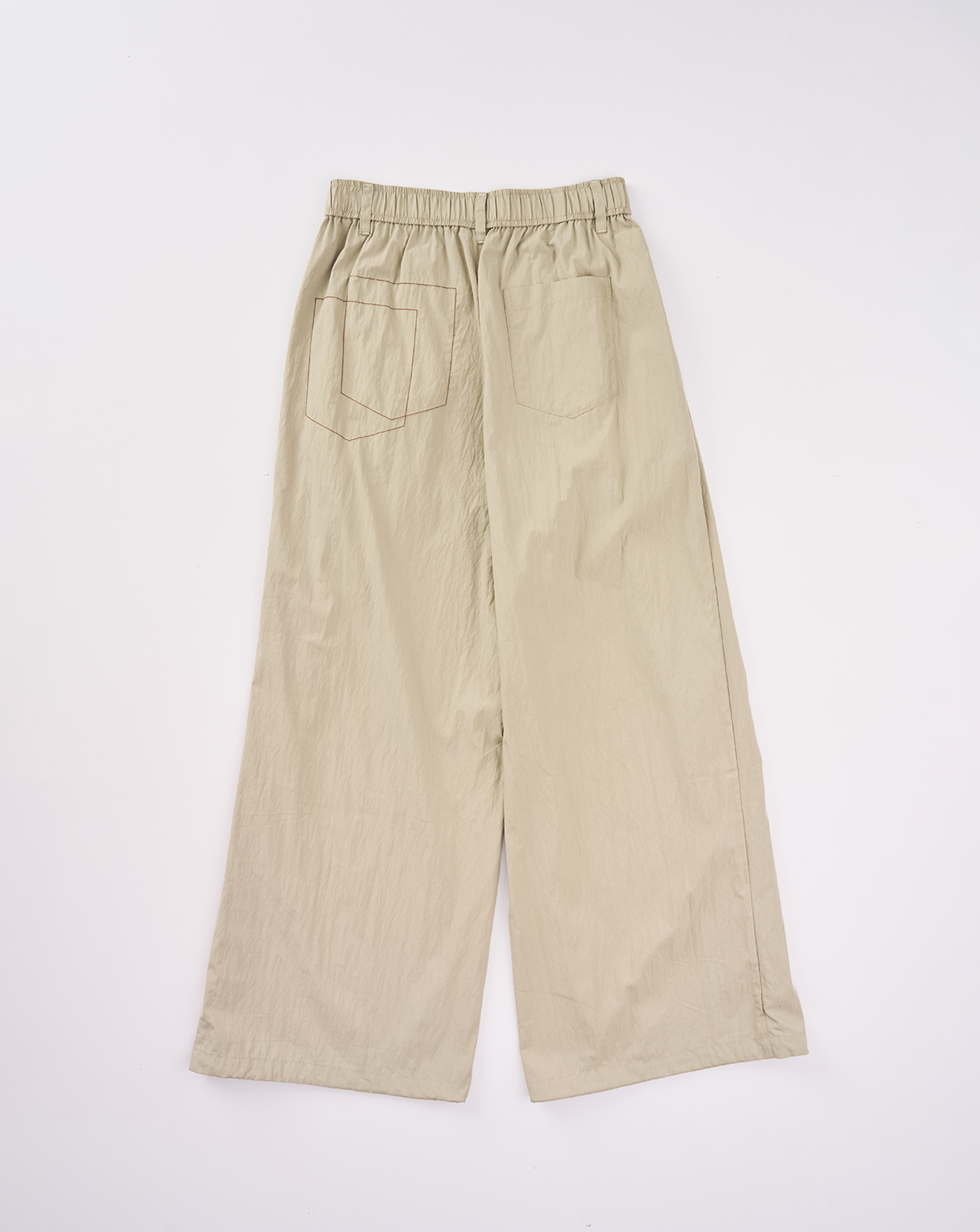 口袋框車線透氣鬆緊打褶寬褲(兩色)