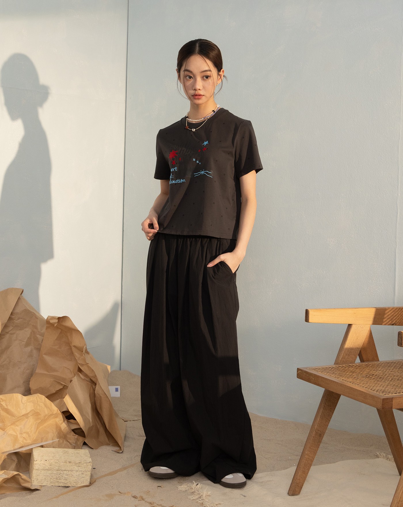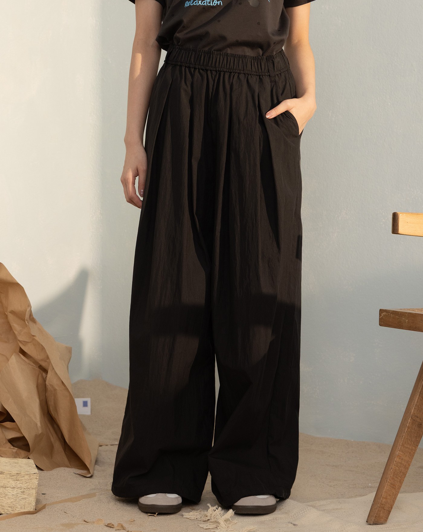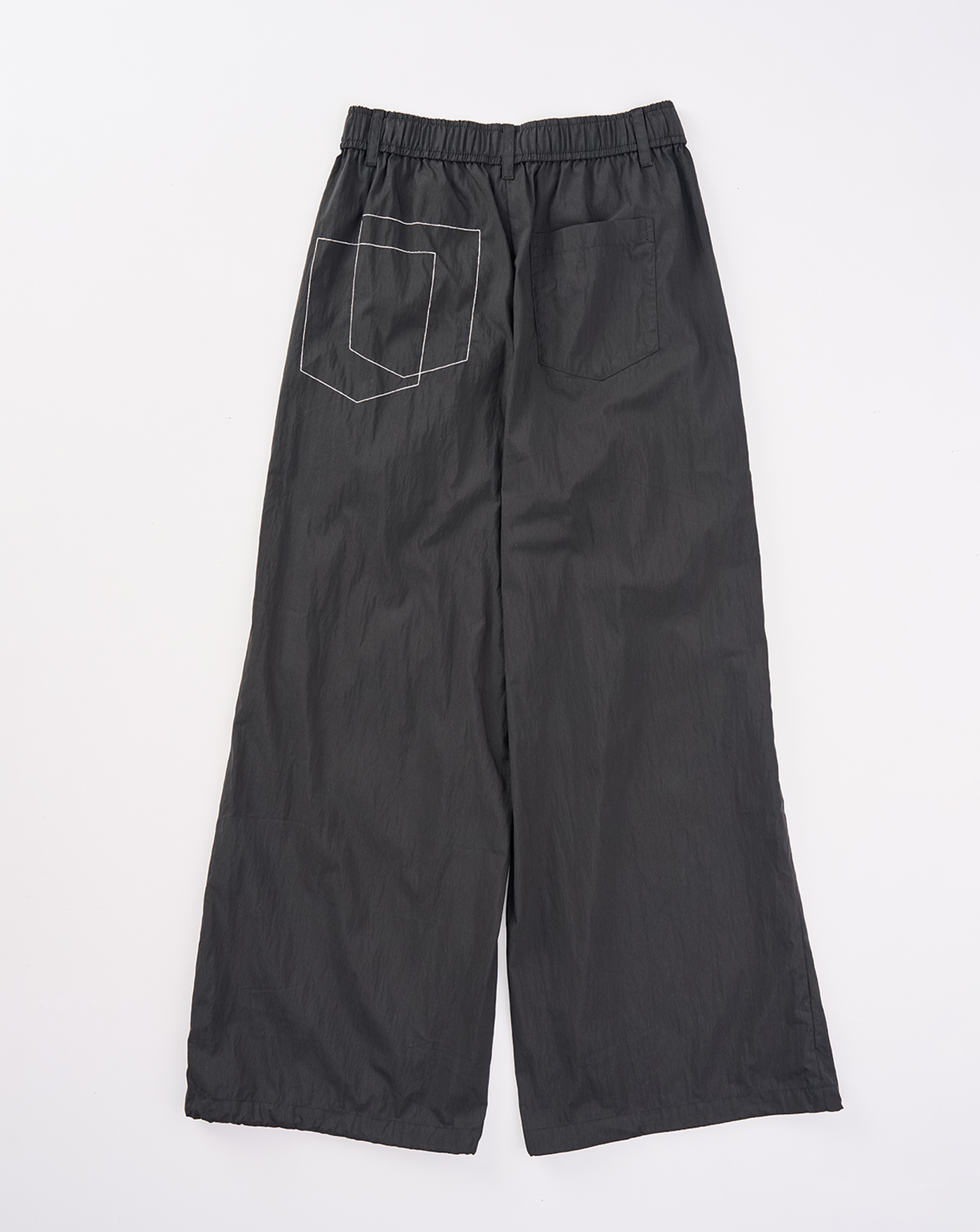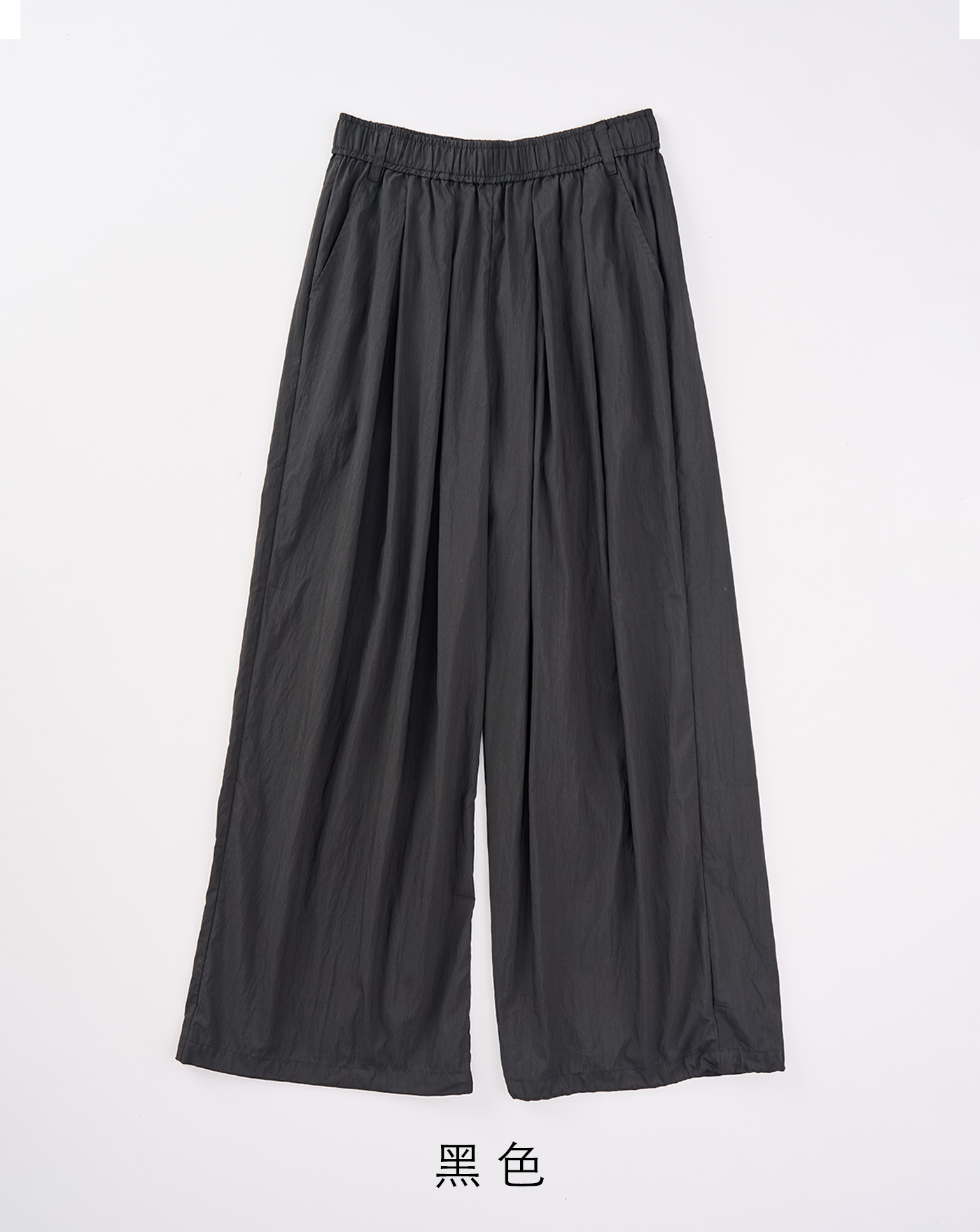 口袋框車線透氣鬆緊打褶寬褲(兩色)