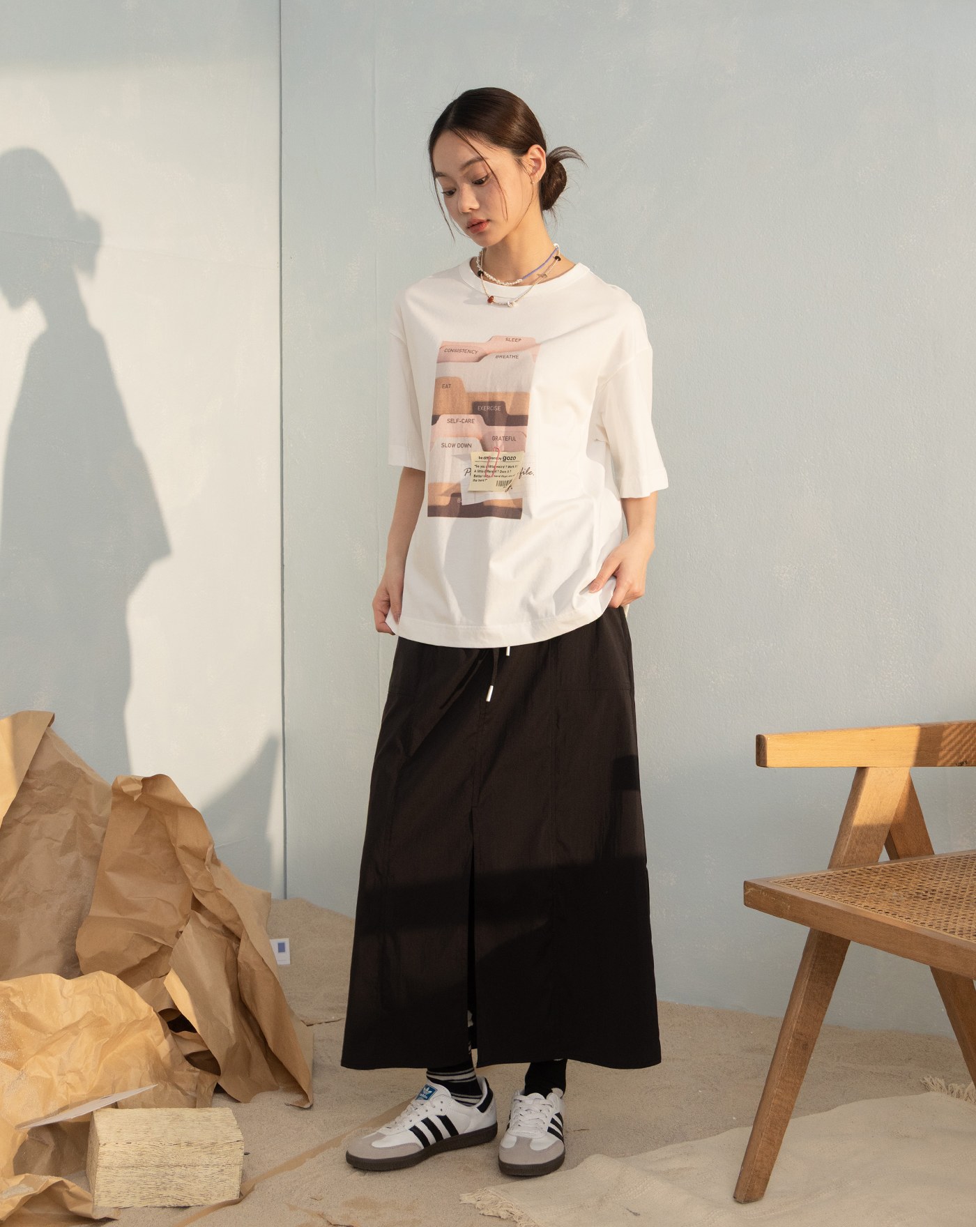 洗衣籃滑雪場下擺拼色天絲T恤(兩色)