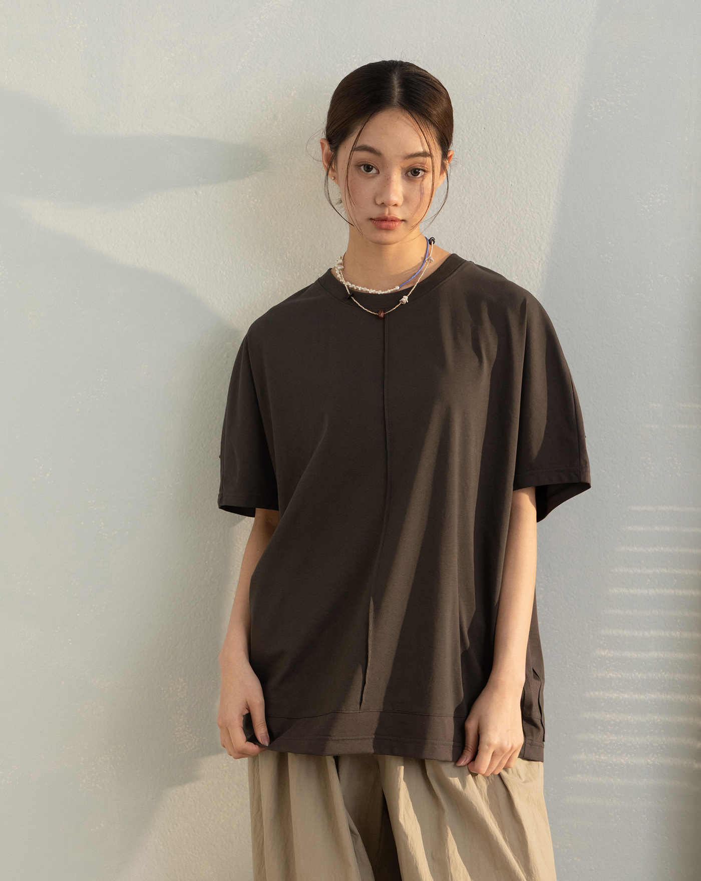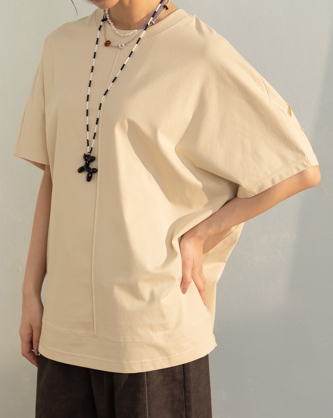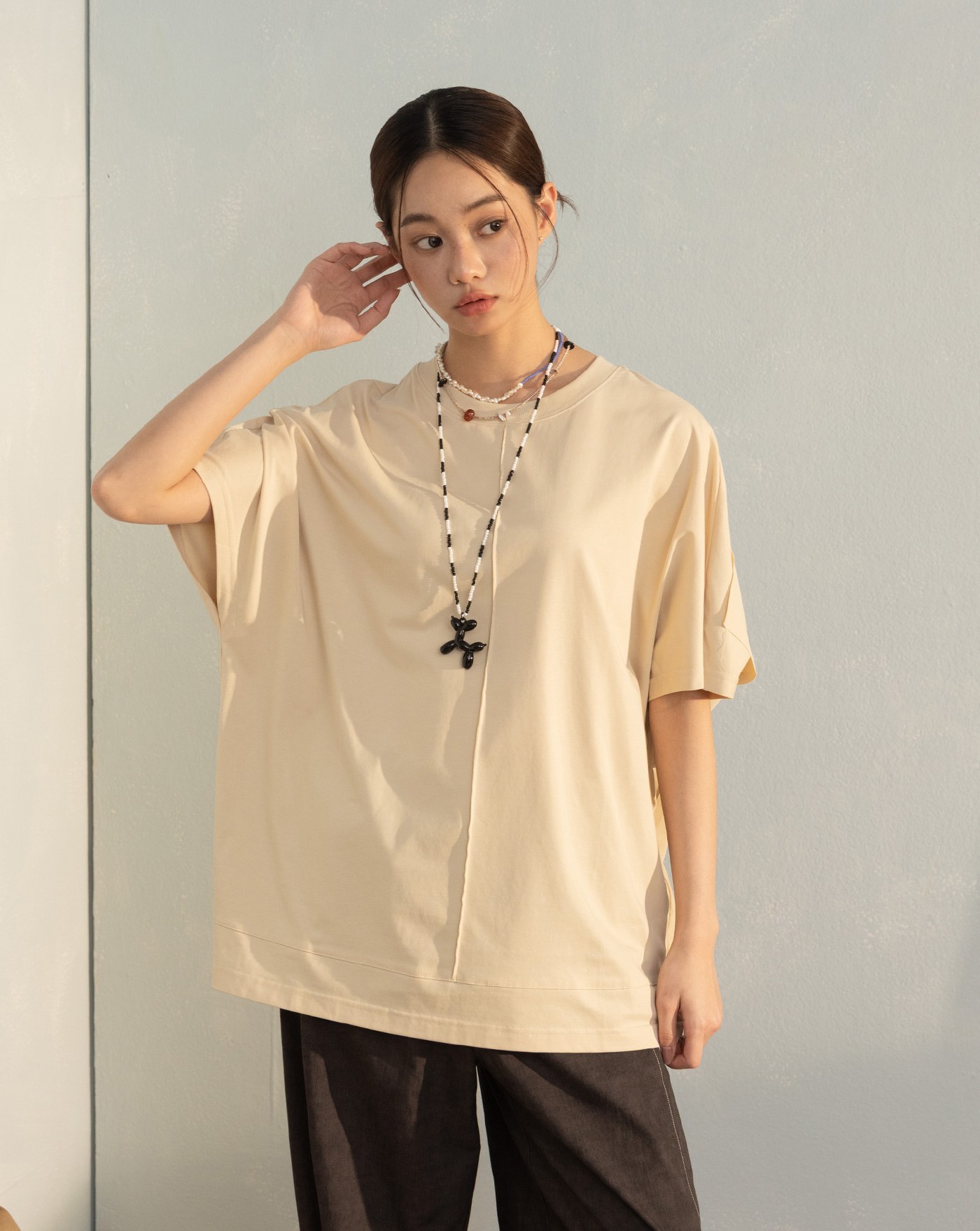 立體車線反摺袖瞬涼涼感T恤(兩色)