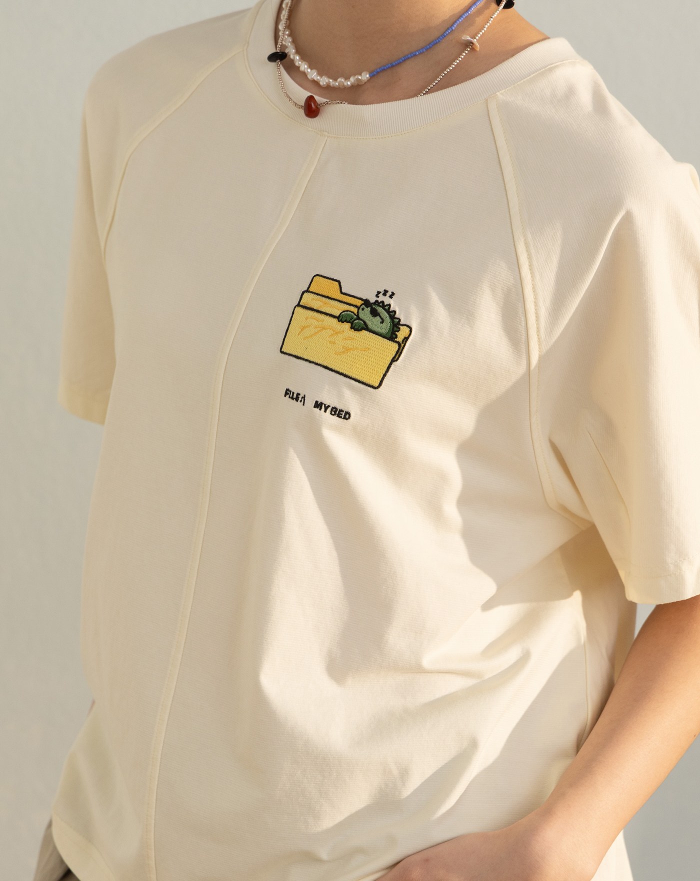 資料夾睡袋小恐龍拉克蘭袖涼感T恤(兩色)