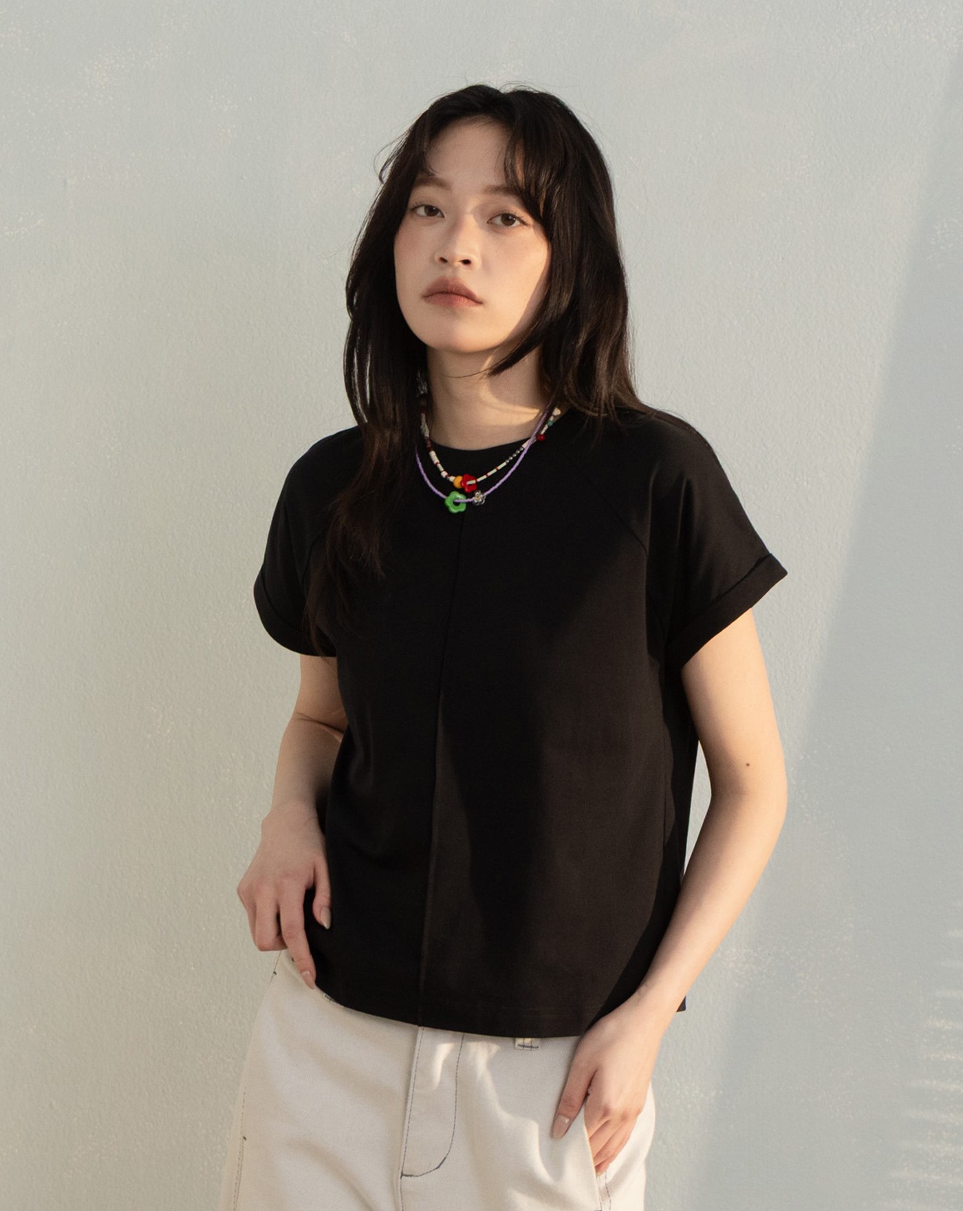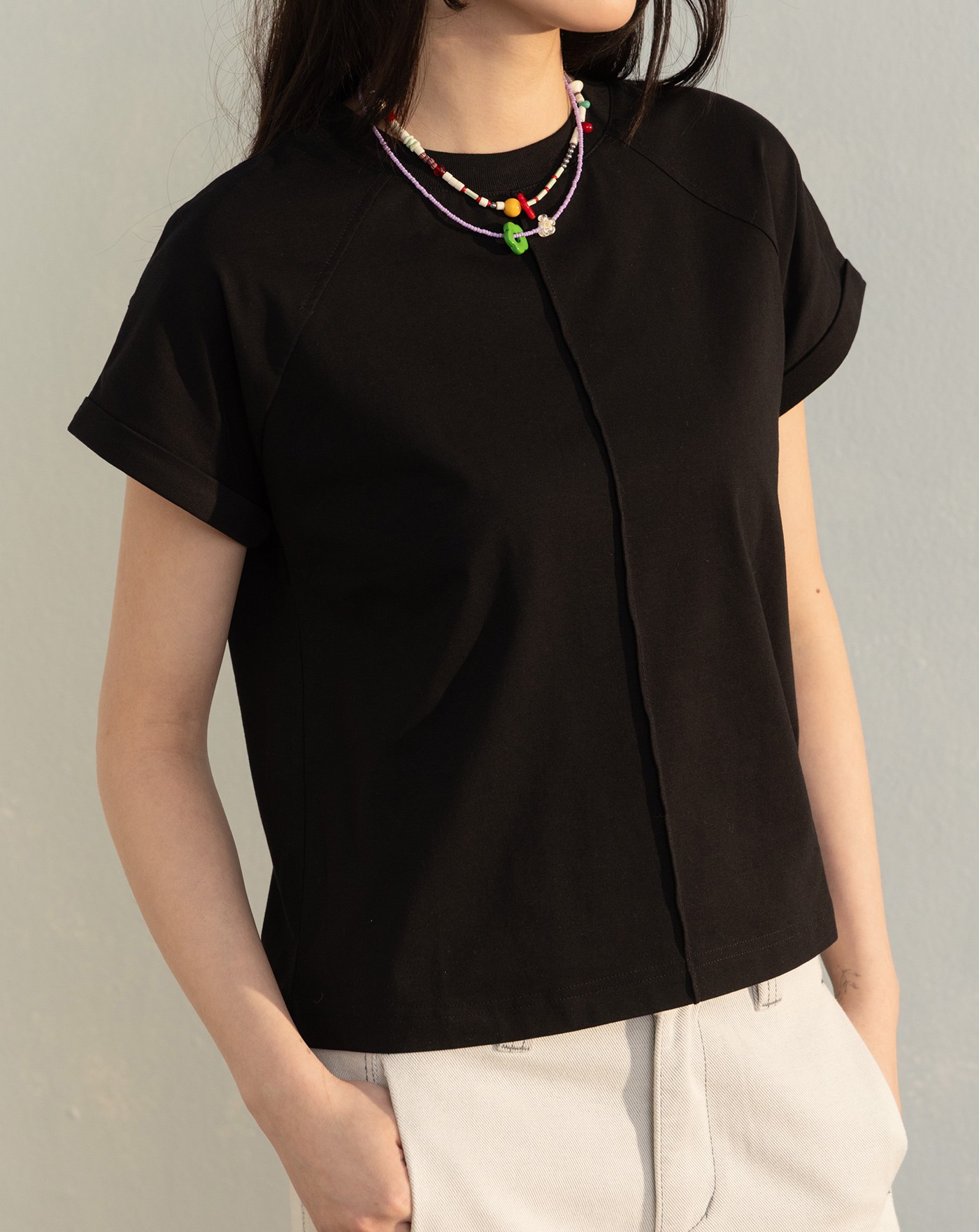 立體車線假兩件瞬涼涼感連袖T恤(兩色)