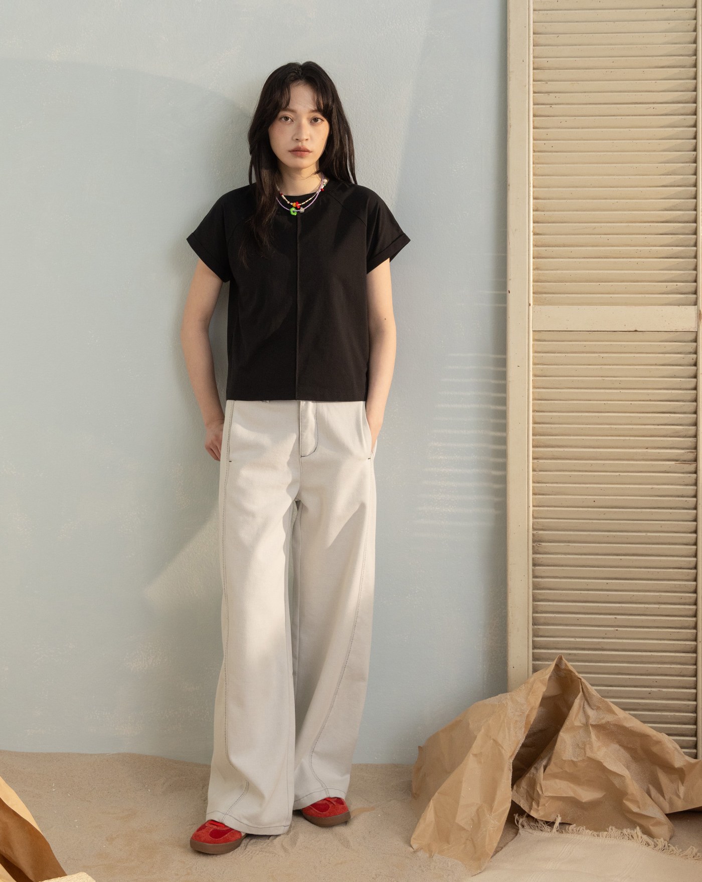 洗衣籃滑雪場下擺拼色天絲T恤(兩色)
