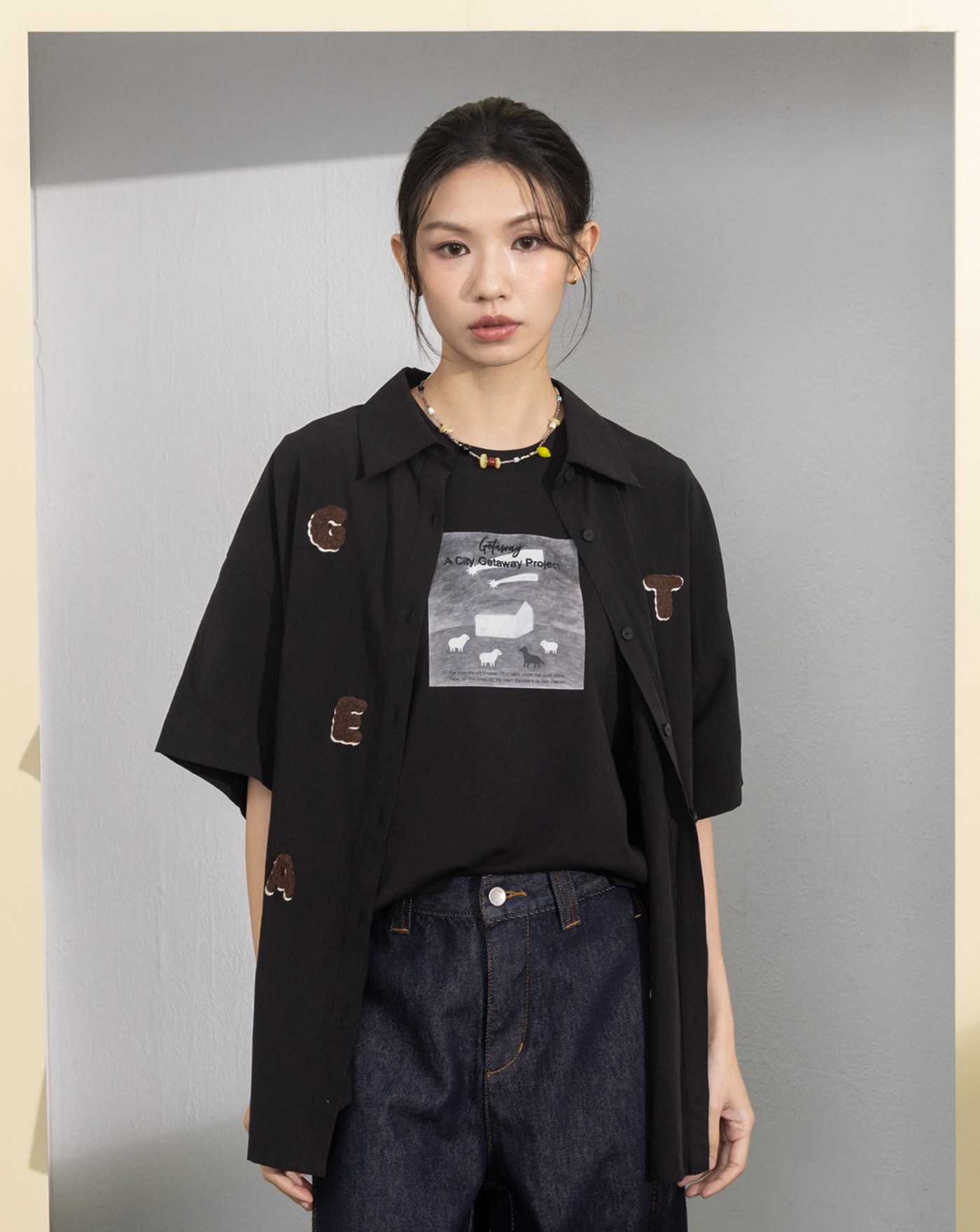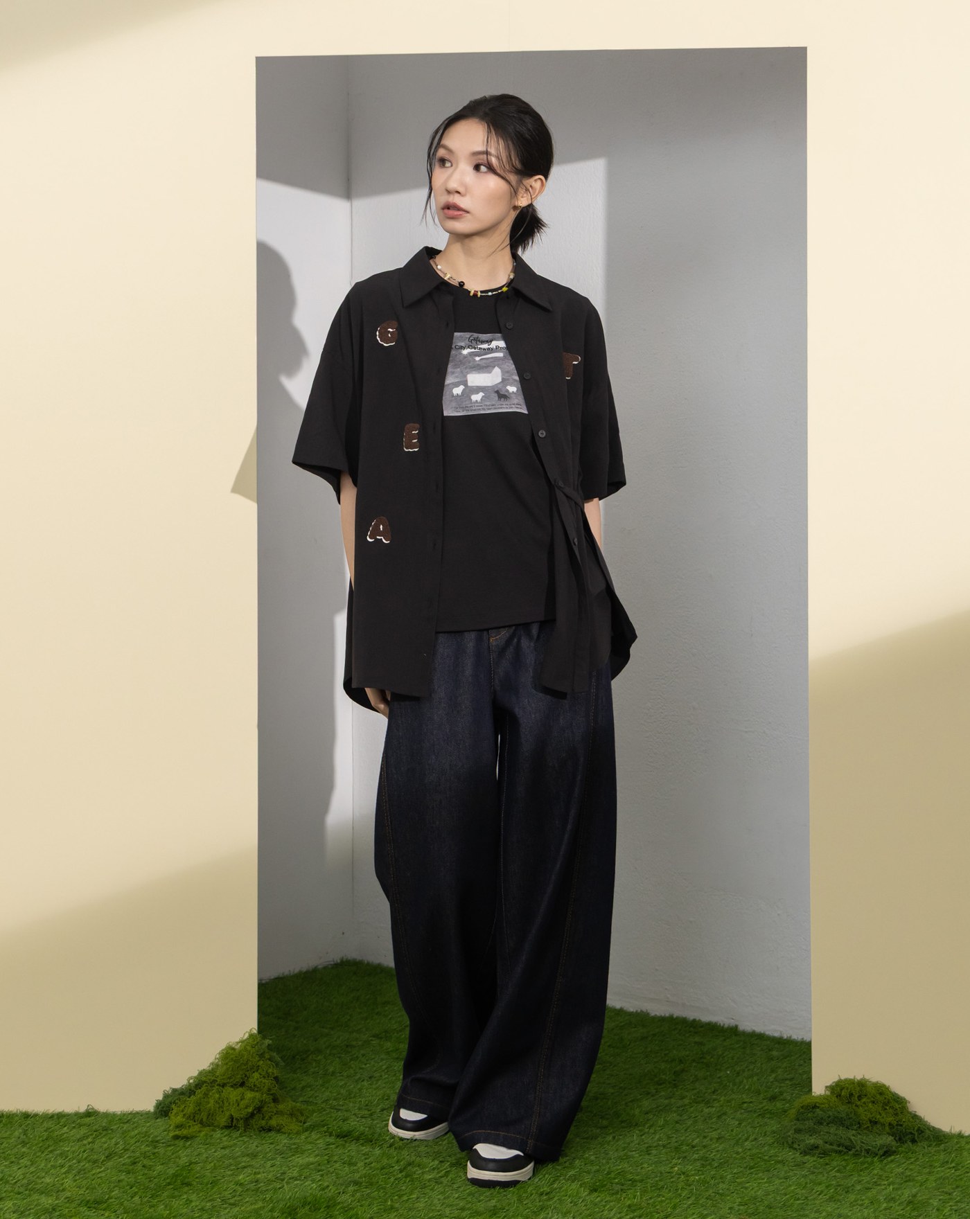 A|彩色水洗牛仔開衩綁帶襯衫(兩色)