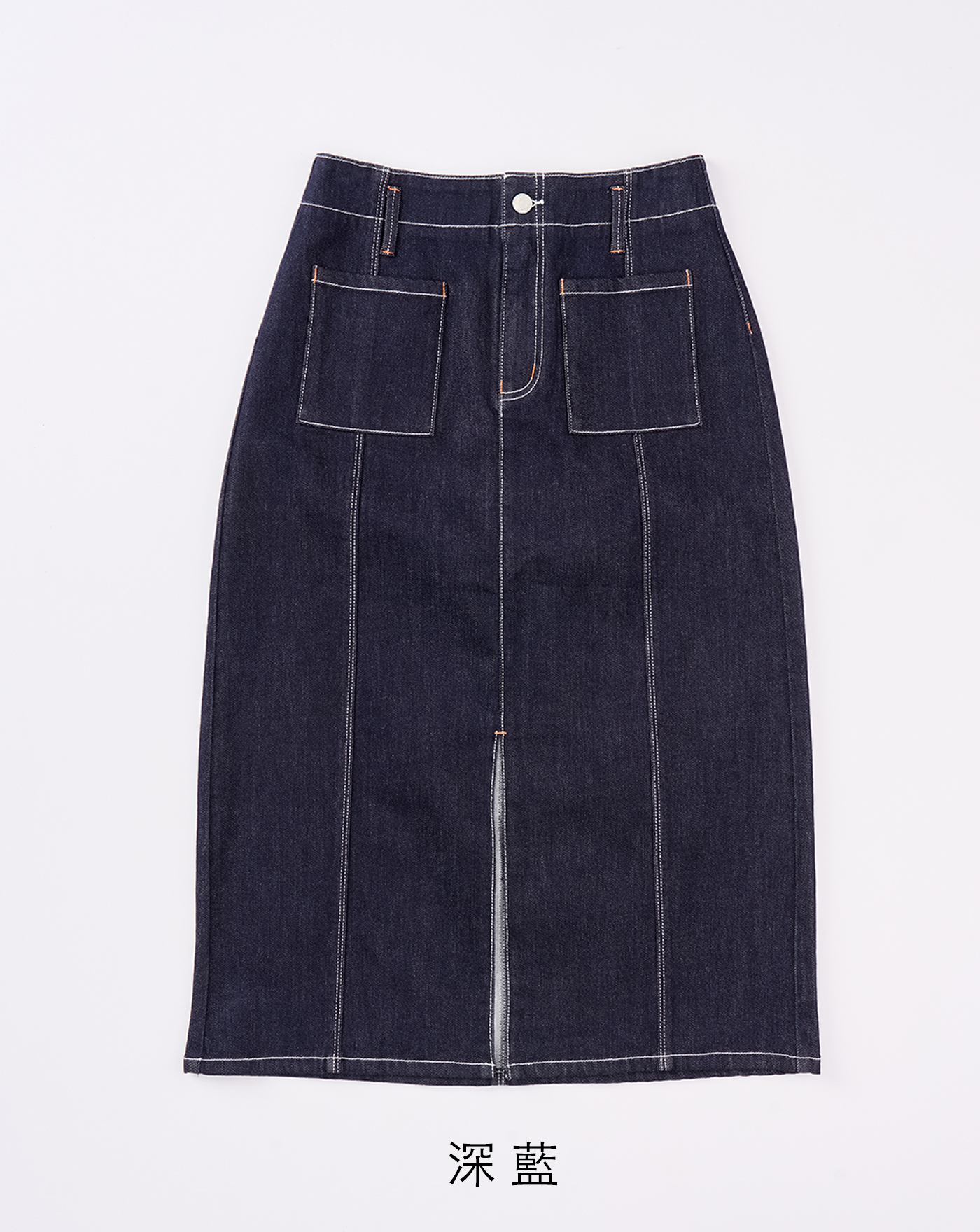 水洗灰前車線開衩牛仔裙