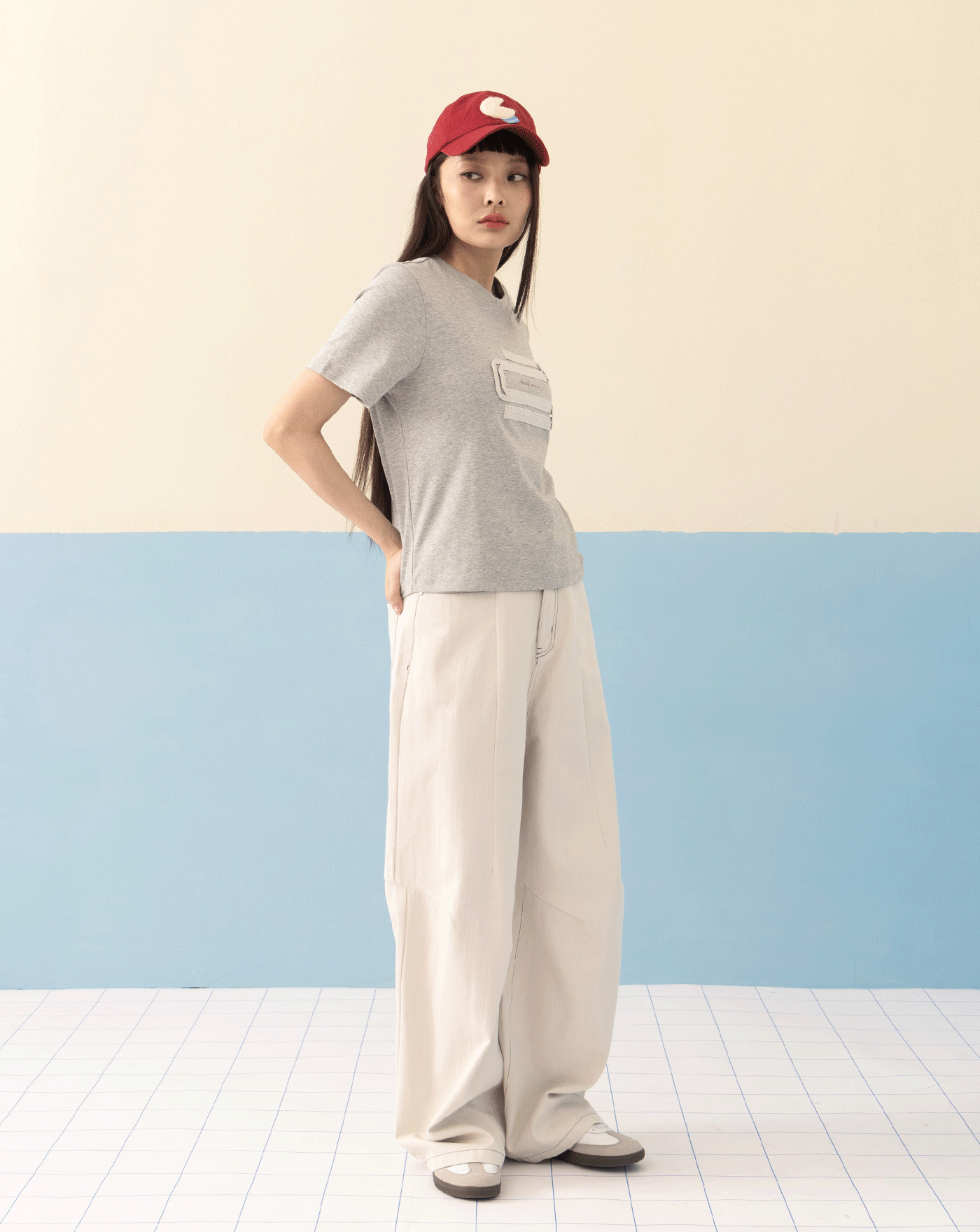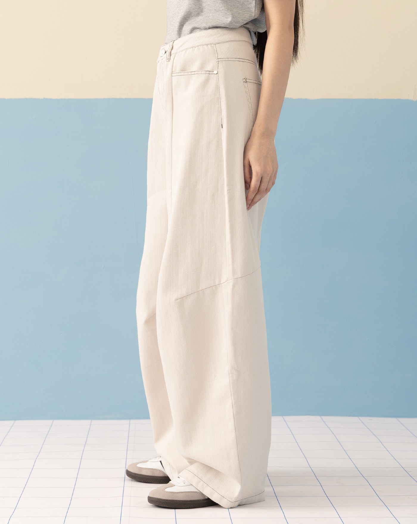 天絲多口袋鬆緊工裝寬褲(兩色)