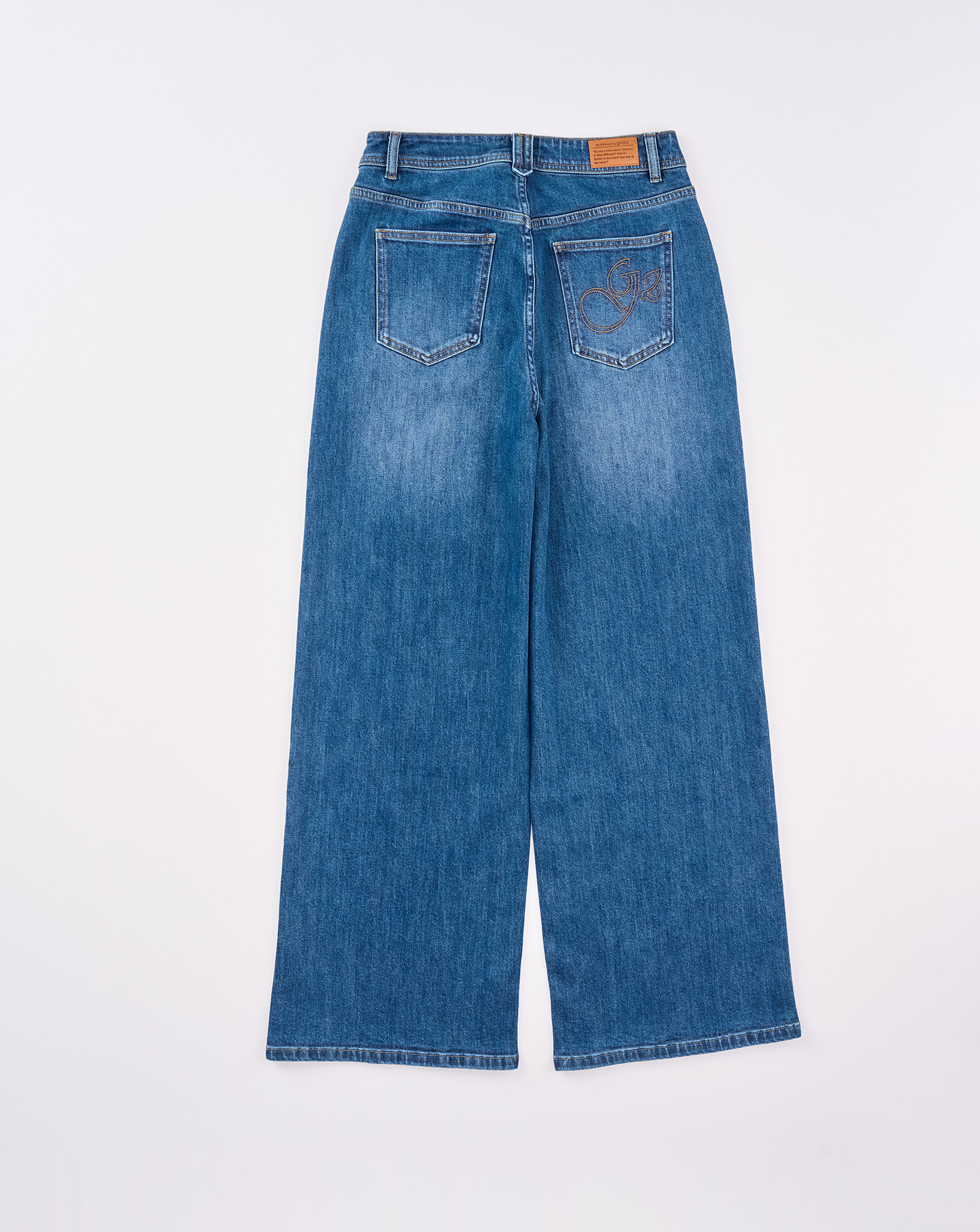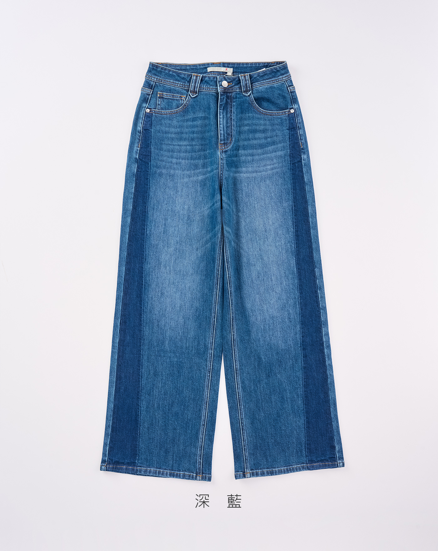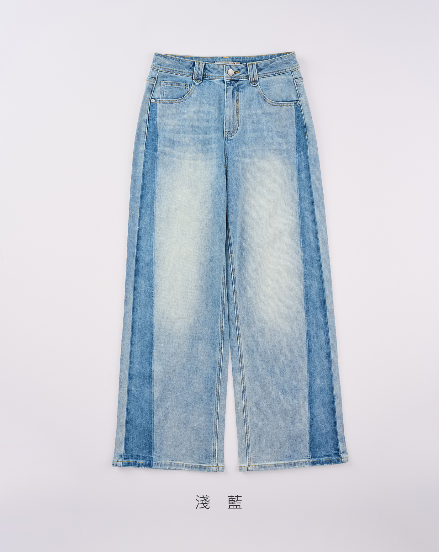 ◢shadow修容雙色拼接牛仔寬褲(兩色)